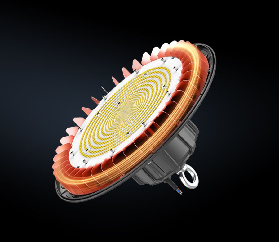 基于热空气向上流动的原理,底部和灯体周围设计了空气动力学的进气口。传入的冷空气在灯体中循环以冷却,并通过在外部和顶部设计的散热器排放。